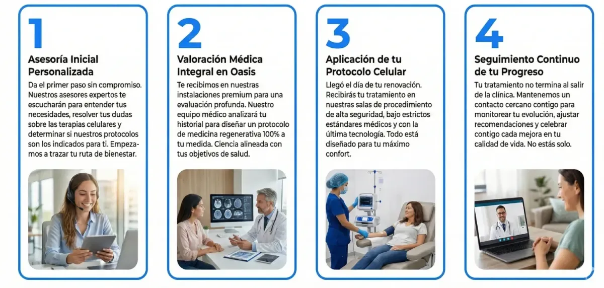 En Oasis, estás en las mejores manos. Nuestro equipo médico se mantiene a la vanguardia internacional en regeneración celular, garantizando que recibas la terapia más pura, segura y potente disponible en México, bajo rigurosos estándares de calidad.